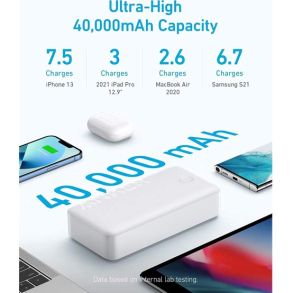 High Capacity Hero: The super huge 40,000mAh cell capacity provides 8.8 charges for iPhone 13, 6.8 charges for Samsung S22 Ultra, and 2.3 charges for MacBook Air 2020.