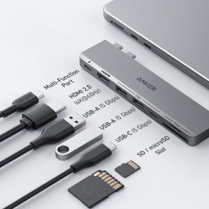 Expand your MacBook's 2 USB-C ports into 1 multi-function USB-C port, 1 USB-C data port, 2 USB-A ports, 1 HDMI port, 1 SD card slot, and 1 microSD card slot-all from one ultra-compact hub.