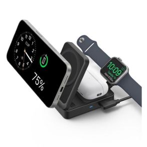 Charge your iPhone, AirPods, and Apple Watch simultaneously, all while enjoying the versatility of the built-in adjustable phone stand.