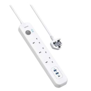 SB Expansion: A USB-C port, 2 USB ports, and 3 AC outlets provide power and charging for up to 6 devices from a single wall outlet.