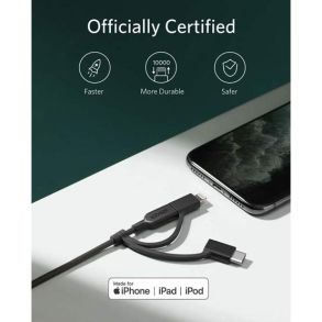 The durability you’ve come to expect from PowerLine II—now with universal compatibility. With Micro USB, USB-C, and Lightning connectors built-in, it’s the only cable you’ll ever need.