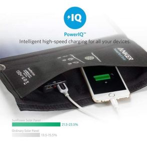 Anker PowerPort Solar Lite Charge with the power of the sun. Off-the-grid Power When you’re out enjoying the great outdoors, enjoy yet another perk: free limitless power. Simply spread out the solar panels or attach to your pack to start repowering your gadgets. Fast Charging Technology Exclusive to Anker, PowerIQ discovers and replicates your device’s original charging protocol to provide its fastest possible charging speed up to 2.1 amps overall (with enough direct sunlight). Superior Portability Compact dimensions (11 ? 6.3in folded or 18.9 ? 11.in opened) and rugged elastic loops on the top and four corners make attaching it to a backpack, tree branch, or tent a synch. Super lightweight (12.5oz) and slim foldable design ensure it easily fits in your daypack. Incredibly Durable Industrial-strength PET plastic faced solar panels sewn into high-wear polyester canvas ensure it’s able to withstand the trials of your outdoor adventures. Advanced Safety Short circuit and surge protection technology keep you and your devices safe. For Optimal Use: ? Ability to charge your device dependent on sufficient sunlight. ? While the polyester canvas provides some water protection, we recommend minimizing moisture exposure to protect electrical components. ? Compatible with Apple and Android smartphones, tablets (including the Nexus 7) and other USB-charged devices. Note: This charger is not compatible with the iPod nano, iPod Classic, iPod Shuffle, HP TouchPad and Asus tablets. Not a battery. Does not hold its own charge. May only charge in direct sunlight.