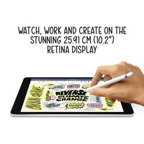 With incredible detail and vivid colors, the 10.2?inch Retina display is perfect for watching movies, working on a project, or drawing your next masterpiece. True Tone adjusts the display to the color temperature of the room to make viewing comfortable in any light.