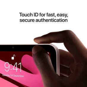 Touch ID is integrated into the top button for fast, easy, and secure authentication. Use your fingerprint to unlock your iPad or quickly and securely make a payment.