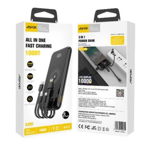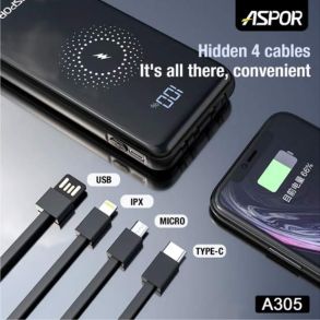 Built-in USB Micro, Type-C, and iPhone cables compatible with iPhone 13/12/11/XR/8/7, iPad, and Samsung Galaxy S20/S21/S22, Tablet, and other smart devices. The built-in USB A input cable recharge the power bank itself. No need to take any charging cables