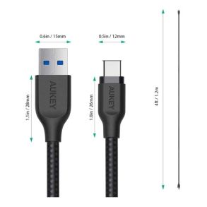 Aukey CB-AC1 BK Braided Nylon USB 3.1 USB A To USB C Cable 1.2m - Black