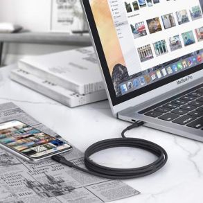 Charging And Data Sync - You can charge and data sync by connecting iPhone, iPad, iPod with Lightning connector to the USB-C port or Thunderbolt 3 (USB-C) port of Mac using Aukey Type C to Lightning cable.