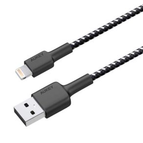 Aukey CB-BAL4 BK Braided Nylon MFI Lightning Cable - Sync & Charge 2M - Black