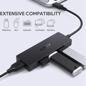 Aukey CB-C64 USB-C to 4-Port USB 3.0 Gen 1 Aluminum Hub - Black