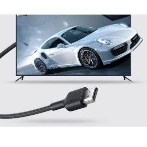 - Durable, flexible braided nylon HDMI cable. Handy cable strap makes cable management a breeze.