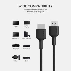 Aukey CB-H01 BK Impulse HDMI 2.0 High-Speed HDMI Cable 4K 60Hz 6.6ft 2-Pack