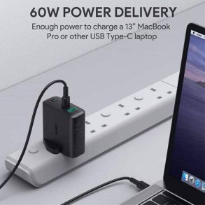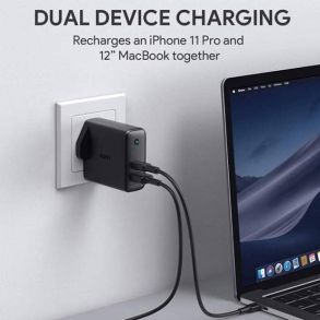 Dynamic Detect: Augmented with AUKEY Dynamic Detect, the USB-C port can output the full power of the charger with 60W Power Delivery when used on its own, and 45W Power Delivery when both ports are used together