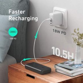 Fast Recharging: Refill the Power Bank faster than ever with 18W INPUT in just 6 ~ 7 hours with an 18W PD charger