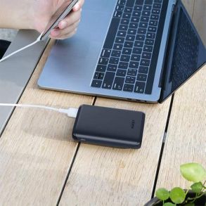 Keep your devices charged on-the-go with this compact 10000mAh power bank. Slip it in your backpack or laptop bag. The fingerprint-resistant, matte black surface has a great look and feel.