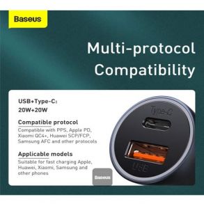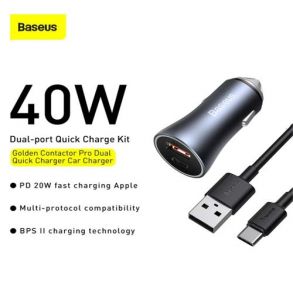 Baseus Golden Contactor Pro Dual Quick Car Charger U+C 40w - Grey