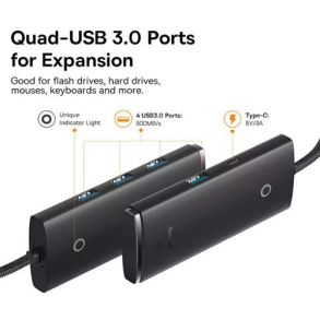 Porodo Blue 4 in1 USB-A Hub to 1 x USB-A 3.0 5Gbps and 3 x USB- A 2.0 480Mbps