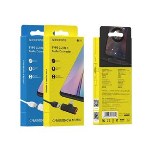 Borofone BV8 2-in-1 audio converter for USB-C to USB-C & 3.5mm jack - White