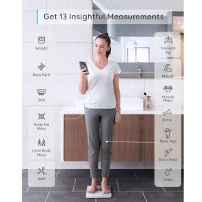Smart Scale with Bluetooth, Large LED Display, 14 Measurements, Weight/Body Fat/BMI/Fitness Body Composition Analysis, Auto On/Off, Auto Zeroing, Tempered Glass Surface, Black/White, lbs/kg