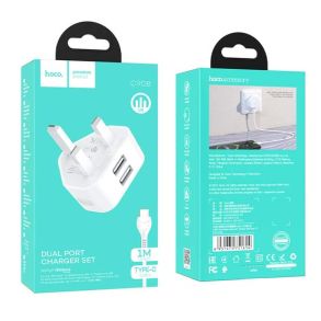 C90B Grandiose, wall charger, dual USB 2.1A output, UK plug, set with cable for Lightning / Type-C / Micro-USB