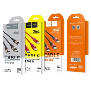 Hoco X26 3-in-1 Charging Cable for Lightning Micro-USB Type-C 1m - Red