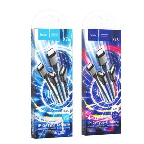 X76 Super, 4-in-1 charging cable, for Lightning*2 / Micro-USB / Type-C, 1m, current up to 2A
