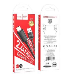 • Hoco X88 charging data cable for Lightning Length 1 meter, weight 22g. PVC Synchronous support for charging and data transmission. Length 1m Outer material PVC Connector material PVC 4 Cor (43/0.08)*2+(16/0.08)*2 ODCurrent up to 2.4A.