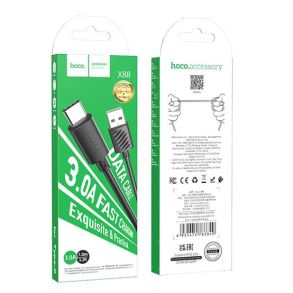 • The Hoco X88 USB to Type C charging cable 3A 1m. Hoco X88 Fast Charging connection cable. The ideal cable to easily transfer videos, photos, and music from your mobile phone to your laptop/PC and vice versa and charge your device at the same time. With a specially made TPE material that makes it durable to use and ensures a maximum 3A charging speed.