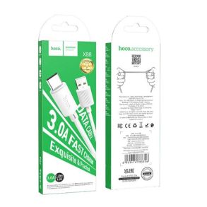 The Hoco X88 USB to Type C charging cable 3A 1m. Hoco X88 Fast Charging connection cable. The ideal cable to easily transfer videos, photos, and music from your mobile phone to your laptop/PC and vice versa and charge your device at the same time. With a specially made TPE material that makes it durable to use and ensures a maximum 3A charging speed.