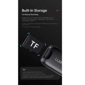 Backup Storage: Equipped with a TF Card Slot, the TX transmitter can be used for local audio backup. Additionally, it also serves as a standalone recorder.
