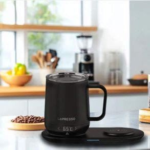 The Lepresso Smart Heating Mug is your only buddy to maintain your drink at the right temperature. This stylish mug, made from the finest stainless steel and featuring a smooth ceramic glaze inside, boasts a generous 355mL capacity, durability, and a refined finish. It features precise temperature control, enabling users to set their desired warmth between 35°C and 65°C, which will be displayed in real-time on its intuitive interface. Equipped with a strong 4000mAh battery, this mug guarantees long-lasting performance and is easily rechargeable via DC port or wirelessly via its charging base. Besides, it comes with overheat protection and leak-proof sealing for added practicality. Enjoy every sip from your coffee to tea or whatever drink you may prefer at home, in the office, or anywhere on the go with Lepresso Smart Heating Mug.
