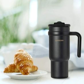 The Lepresso Insulated Mug provides functionality and fashion to make your drinking perfect. With its capacity of 900mL, the mug is made from superior materials 304: stainless steel for the outer layer and 316 stainless steel for the inner part durability, safety, and long life. The Lepresso mug has dual drink mode functionality that will allow you to enjoy cold and warm beverages. Be it with an iced coffee or hot tea, insulation technology keeps your drink at just the right temperature for hours. Featuring a push-down unlock and push-up lock mechanism, this water bottle is designed to be leakproof with on-the-go convenience in mind. The addition of a stainless steel straw further enhances eco-friendliness for daily applications in this water bottle. From work, traveling, or leisure, the Lepresso Insulated Mug is the ultimate companion to quality and versatility for any form of drinkware.