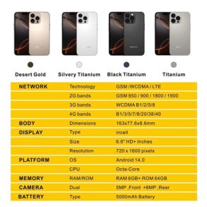 - Color: Desert Gold, Silver Titanium, Blak Titanium