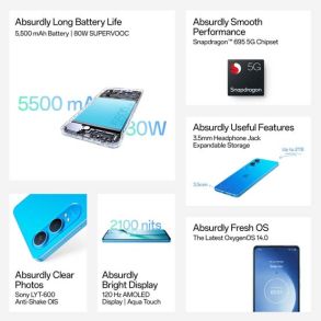 - Display: 6.67" AMOLED Display, 120Hz, 1080 × 2400 pixels, 394 ppi