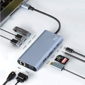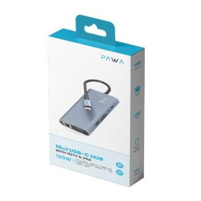 Pawa 10 in1 USB-C HUB With HDTV & VGA (PW-TCHUB101) - Grey