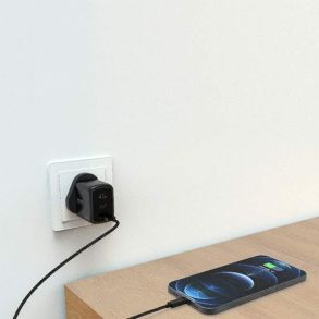 Pawa Stout GaN Travel Charger 45W UK Standard with Type-C to Lightning - Black
