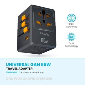 Pawa Universal Gan 65W Travel Adapter (PW-TCUTA65W-BK) - Black