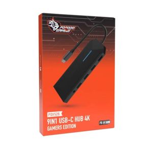 The Porodo Gaming 9-in-1 USB-C Hub 4K Gamers Edition is an excellent solution for expanding the ports on your laptop or tablet. With its versatile features and connectivity options, this hub offers convenience and functionality. Firstly, it includes a USB-C PD 100W port, specifically designed for efficient device charging which provides a powerful 100PD charge, ensuring your devices are powered up quickly and efficiently. In addition, it features an HDMI 4K@30Hz port that enables you to connect an external display to your laptop or tablet. This port supports up to 4K resolution at 30 frames per second, allowing you to enjoy high-quality visuals on a larger screen. Furthermore, USB-A 3.0 ports are available for connecting various USB peripherals, such as keyboards and other devices. These ports offer reliable and fast connectivity for your additional accessories. The hub also includes a card reader, which allows you to conveniently read SD and MMC cards. Additionally, a separate TF card reader is provided for reading TF cards. For those seeking a stable and fast internet connection, the versatile hub features a Gigabit Ethernet port which enables a wired internet connection with speeds of up to 1 Gbps, ensuring a smooth online experience. Lastly, the gaming hub offers an Audio 3.5mm jack, allowing you to easily connect headphones or speakers. This feature is beneficial for gamers, creative professionals, and anyone who desires enhanced audio output.
