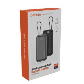Experience the convenience and power of the Porodo 10000mAh Power Bank with Dual Built-In Cables and Fast Charging capabilities. It features a high capacity 10000mAh battery to make sure your gadgets stay powered wherever you go. You can charge your devices rapidly with multiple power output options including 20W Type-C Output, 22.5W USB-A Output, 22.5W Built-in Type-C Output, and a built-in Lightning Output that delivers up to 10W. These charging options will give you a 0% to 60% charging in just 30 minutes. It is also equipped with a digital display to update you about the battery status. Charge multiple devices at the same time, with the Porodo 10000mAh Power bank Dual Built-In Cables.