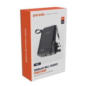 Keep charged up and stay connected with the versatile Porodo 10000mAh Wall Charger Power Bank in Black. it has high-capacity 10000mAh battery and it is designed for providing multiple charges to your smartphone, tablet, and just about any other compatible device. Equipped with options for different charging, this power bank answers to many devices and their respective needs of charging. This power bank also has an output via a USB-C cable supporting 5V/2A, 9V/2.2A, and 12V/1.5A for quick charging. The Lightning cable outputs 5V/2A for Apple devices up to 10W. In this respect, wide-range charging options are made possible with the intent of facilitating different device compatibilities. The Porodo Wall Charger Power Bank is constructed of durable ABS+PC materials that can bear wear and tear well, while its compact design houses inside simple portability for taking along with you anywhere, anytime, whether on the go or just for everyday needs.