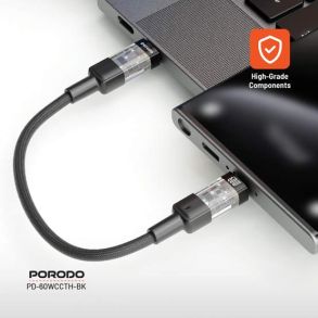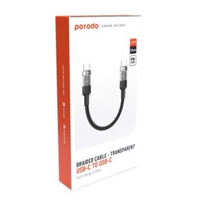 Porodo Braided 60W PD C to C Fast Charging Cable with Transparent Head 35cm (PD-60WCCTH-BK) - Black