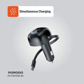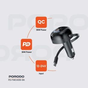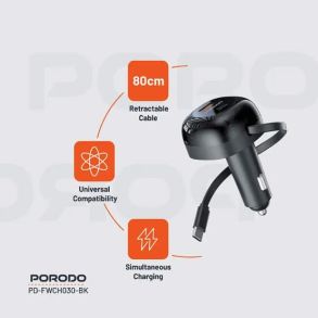 The Porodo Dual Port Car Charger with an 80cm Retractable Type-C Cable represents an excellent performance, compact charging solution for the mobile. It is designed to take an input of 12 to 24V, fast and reliable, using USB-A and USB-C outputs of up to 36W each. Both allow simultaneous charging for a total output of 47W: 17W from the USB-A and 30W from the Type-C. Equipped with Power Delivery (PD 36W) and Quick Charge (QC 36W), it is optimized for speed so that your devices charge as fast and efficiently as possible. The onboard retractable Type-C cable also enhances the comfort and versatility, outputting up to 30W. This charger will work with smartphones and tablets powered by Type-C or USB-A. With power, speed, and function, the Porodo Dual Port Car Charger is perfect for daily transformation and long road trips with an easy-to-use form factor.