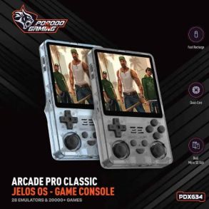 This is the Porodo Gaming Arcade Pro Classic JELOS OS, a versatile and powerful portable game console designed to elevate your gaming experience. With a robust 5000mAh battery, you can enjoy up to 10 hours of uninterrupted playtime. Recharging is quick and easy, taking only 2.5 hours with the 5V/2A input.