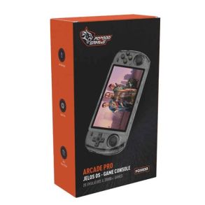 Here is the Porodo Gaming Arcade Pro, the ultimate portable gaming console that brings a world of gaming to your fingertips. Engineered with JELOS OS, this sleek device offers unparalleled versatility and performance, packed into a handheld form factor.