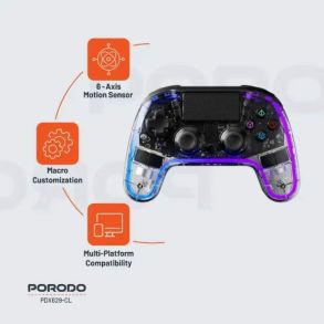The Porodo Gaming Crystal Shell PS4 Controller combines style, functionality, and versatility in one's game. It offers stable wireless over Bluetooth V5.0 connectivity and boasts an operating range of up to 8 meters, hence very suitable for high-intensity game sessions. Built with a 900mAh rechargeable battery, it keeps the fun going for 6-16 hours on a single charge and is equipped with a Type-C charging port for quick 3-4 hour recharging. Designed to be compatible with multi-platforms: PS4, PS3, PC (D-INPUT and X-INPUT), iOS, and Android. Enhanced features, including a 6-axis motion sensor, touchpad, and vibration, are added for immersive and precise control. Macro customization is allowed so that you can customize button functions based on your preference to personalize the gaming experience. Equipped with a 3.5mm TRRS audio jack, this Porodo Gaming Crystal Shell PS4 Controller ensures crystal-clear communication during the game. The design is ergonomic in nature, and its functions are versatile enough to be suitable for any gamer.