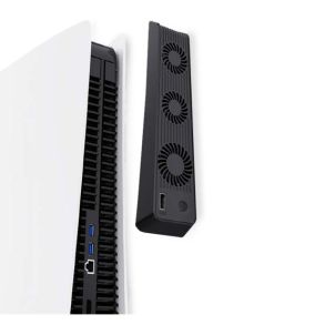The PS5 cooling fan is specifically designed to prevent your console from overheating during long gaming sessions. In addition, this super magnificent device is compatible with both the PS5 disc and digital editions, making it a versatile accessory. Its impressive features further enhance its functionality. Firstly, the fan incorporates three built-in fans with adjustable speed levels, allowing you to select the desired cooling intensity. These fans work collaboratively to circulate air around the console, effectively maintaining its temperature. Moreover, the fan is equipped with a blue LED light that serves as an indicator when it is activated. This LED light also turns red to alert you if the console's temperature exceeds a certain threshold. To power the fan and activate the LED light, it uses a single USB input. Additionally, it provides an extra USB port, which can be utilized for data transfer at 480 Mbps or for charging your gaming stick or headphones.