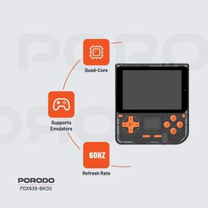 • Venture back into the history of video games with the Porodo Gaming Retro Arcade Gaming Console. It is planned and created with comfort for classic players and first-time audiences. This powerful console uses a robust 3000mAh battery, enabling up to 6 hours of play without interruption. It features 1GB RAM, so there is no lag, even with the number of games being played reaching over 5000. It also incorporates 19 emulators of various classic gaming consoles to enhance its power. Among Technology: 3D games application, 1 GB memory size, and a 1 – 60Hz refresh rate. Enable realism from familiar old games owing to these features' resolution and motion smoothness. There is no question that it is the Android de. Among the characteristics you will likely find are the following: 4 Quad-Core Cortex A35 1.5GHz. The model is built for gamers and gets the most out of its hardware while delivering a snappy response. As a more current entertainment that brings familiarity with the enjoyment of arcade gaming, there is the Porodo Gaming Retro Arcade Gaming Console. This is not only an obsolete model but an emulator that is traditionally light and handy. Enjoy the excitement of the arcade machines in the palm of your hand, and as the small device is portable – carry them with you wherever you go!