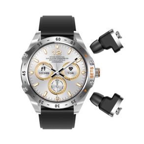 Enjoy wearing a stylish and luxurious smartwatch along with earbuds placed at the side of it; this is what the Porodo Hype Smartwatch With Earbuds presents. This sleek designed smartwatch comes with a 1.52inch 360*360 IPS screen and a 400mAh battery that keeps it powered up for 5 days easily. With a special design for the earbuds placement, you can simply detach them and have a talk time of up to 3H, thanks to their 35mAh battery capacity. A lot of great features are included such as heart rate, sleep and calorie monitoring, Bluetooth calling, pedometer and so much more. A sleek leather strap is also included in the package, so you can replace it with a silicone strap whenever you want.