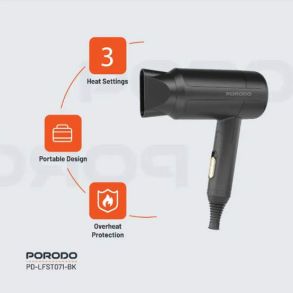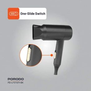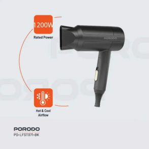 With the compact and practical Porodo Lifestyle 1200-watt foldable hair dryer in black, you can fulfill all your styling needs. This small, foldable appliance is rated at 1200W but can blow with impressive airflow for great portability at home or while traveling. Hot air, cold air, homogeneous heat distribution, and a concentration nozzle are options for precision styling, drying, and finishing operations, making it all the more comprehensive and optimal. Operation is as simple as one slide switch, and there is overheating protection for safety. The hair dryer is fitted with a 1.8M long cable and a UK 3-pin plug, making it ideal not only for use but also for high-performing, portable, and super stylish operations.