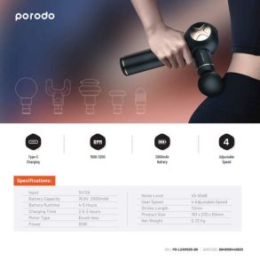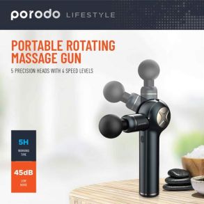 The Porodo Portable Rotating Massage Gun is a multifunctional and efficient tool designed for muscle relaxation and recovery, featuring 5 precision heads for targeted massage, 4 adjustable speed levels ranging from 1500 to 3200 RPM, and a powerful, yet quiet motor. It's lightweight and portable, ideal for use anywhere, and offers a long-lasting battery with up to 5 hours of working time. Additionally, the convenience of Type-C charging makes it easy to keep the device powered and ready for use. This massage gun combines functionality and ease of use, making it a perfect choice for athletes, fitness enthusiasts, or anyone looking to reduce muscle discomfort.