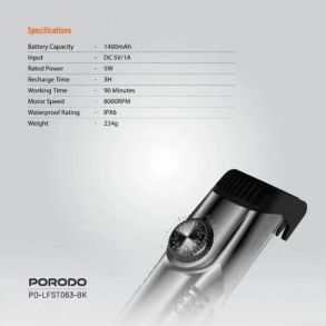 The Porodo Lifestyle Air Suction Beard and Body Trimmer in Black melds superior performance with elegance, providing the ultimate convenience for fast grooming. It uses a 1400mAh battery, allowing 90 minutes of usage with a 3-hour full charge. The motor has a speed of 8000RPM, which is ideal for giving a precise and super quick haircut. With an IPX6 waterproofing rating, the trimmer is wash-proof and water-resistant, making the cleaning process easy after use. The built-in air suction function collects the hair clippings efficiently, relieving your mess. A digital display on the groomer lets you know how much battery life you have left, while the Type-C charging port makes recharging faster and easier. Whether for beard or body, this all-in-one trimmer provides a clean, refined, painless grooming session.